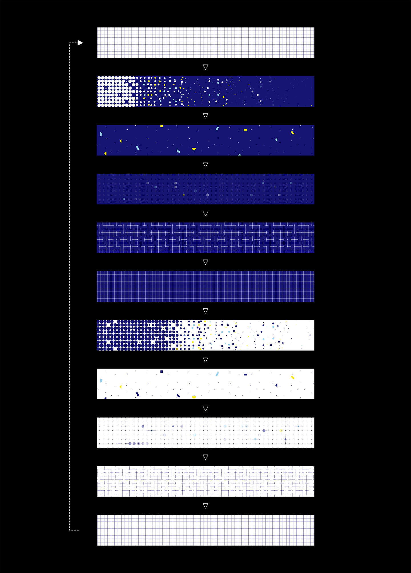 音楽制作を依頼した村中氏からは、自然の持つランダムネスやテクノロジーの持つ精密さを取り入れつつ、全体としては調和や朝・夜といったサイクルを意識して制作したというコメントを頂いてきました。