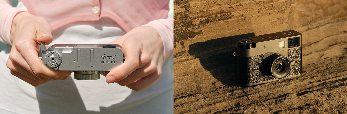 今回、新たに加わった「X half」は、従来の3:2、4:3、16:9といった一般的なアスペクト比とは異なる、縦長の3:4アスペクト比を採用したコンパクトデジタルカメラです。縦構図での作品づくりに最適化されており、縦型の光学ファインダーと液晶モニターを搭載。さらに、2枚の縦構図写真を1枚の画像として合成できる「2 in 1」機能により、ストーリー性のある作品表現を可能にしています。