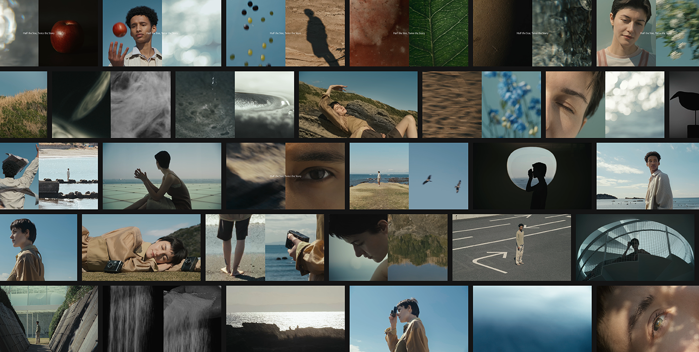 X halfの大きな特徴である“ハーフカメラ”を想起させる縦二分割の表現を軸に、プロダクトの“詩的な世界観”を映像として描き出しました。